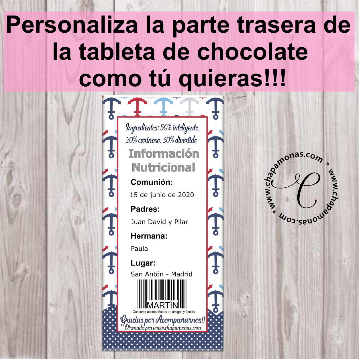 Tableta de Chocolate para personalizar con Muñeco de Comunión y texto que desees, Especial para regalar a tus invitados en la Comunión de tu hijo o como Invitación (Podremos adaptar las personalizaciones para dar el uso que desees), excelente detalle que encantara!!