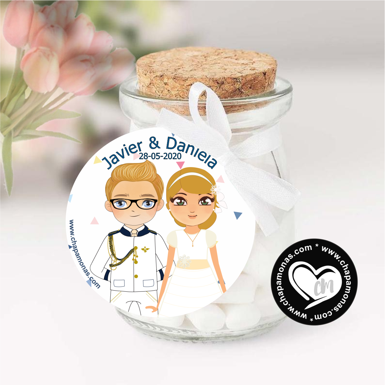 Tamaño disponible; 50mm y 60mm. Podrás elegir entre Etiquetas o pegatinas serán de alta calidad de impresión por un lado, la parte trasera ira en blanco. (No incluye cordón ).