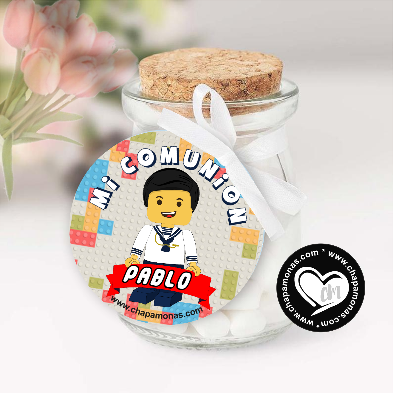 Etiquetas y pegatinas personalizables con diseño LEGO especial para Comuniones, disponibles en circular perfectas para acompañar tus Chapitas, Detalles para los invitados, Mesas de dulces etc. Puedes incluir el nombre del niño o la niña de la comunión. Varios modelos disponible!!