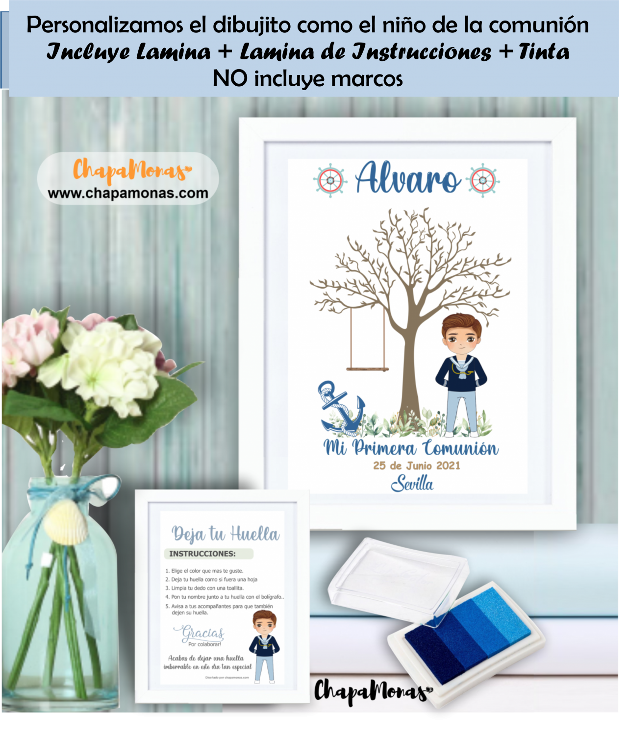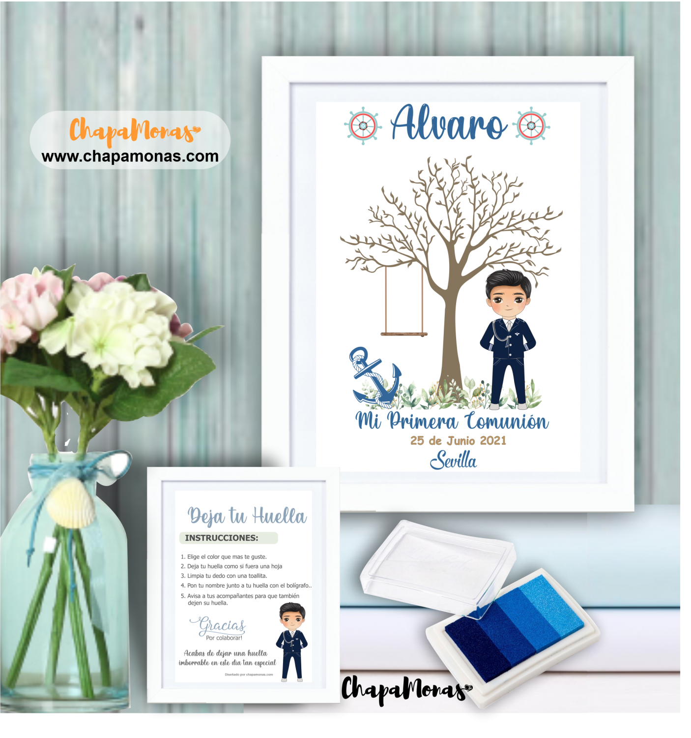 Original complemento para el día de la comunión de tu hijo. Es una lámina totalmente personalizada en la cual podrás elegir el tamaño y que sirve para que todos los invitados y amigos dejen su huella en él.