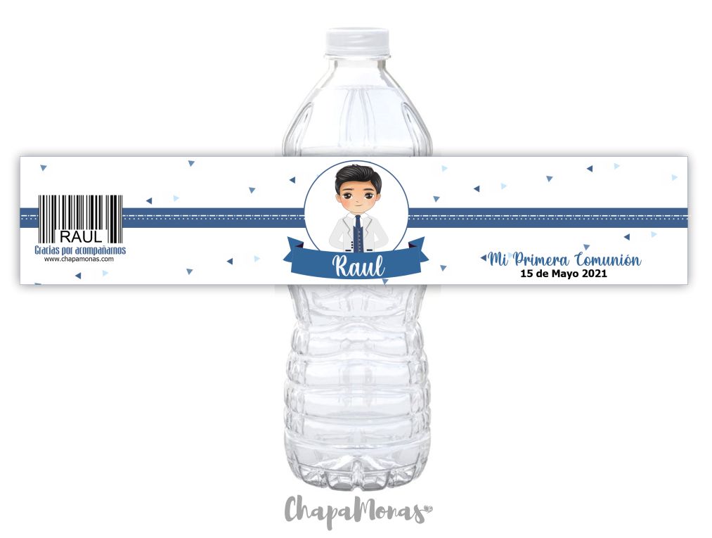 Pegatina especial para personalizar las botellas de agua!! la pegatina se personalizara con dibujito igual que el niño que hace la comunion, con su peinado, color de pelo, ojos y trajecito!!