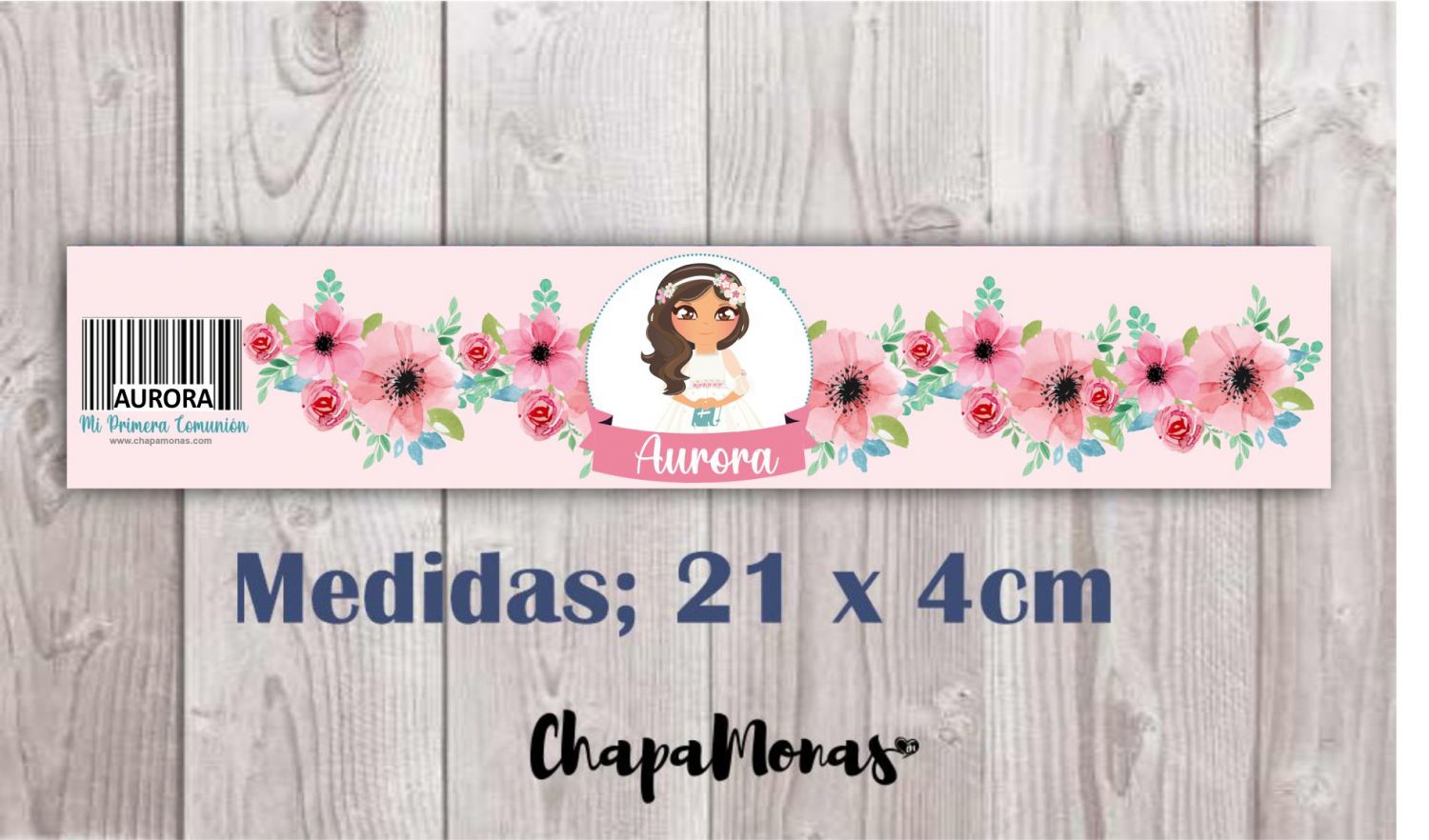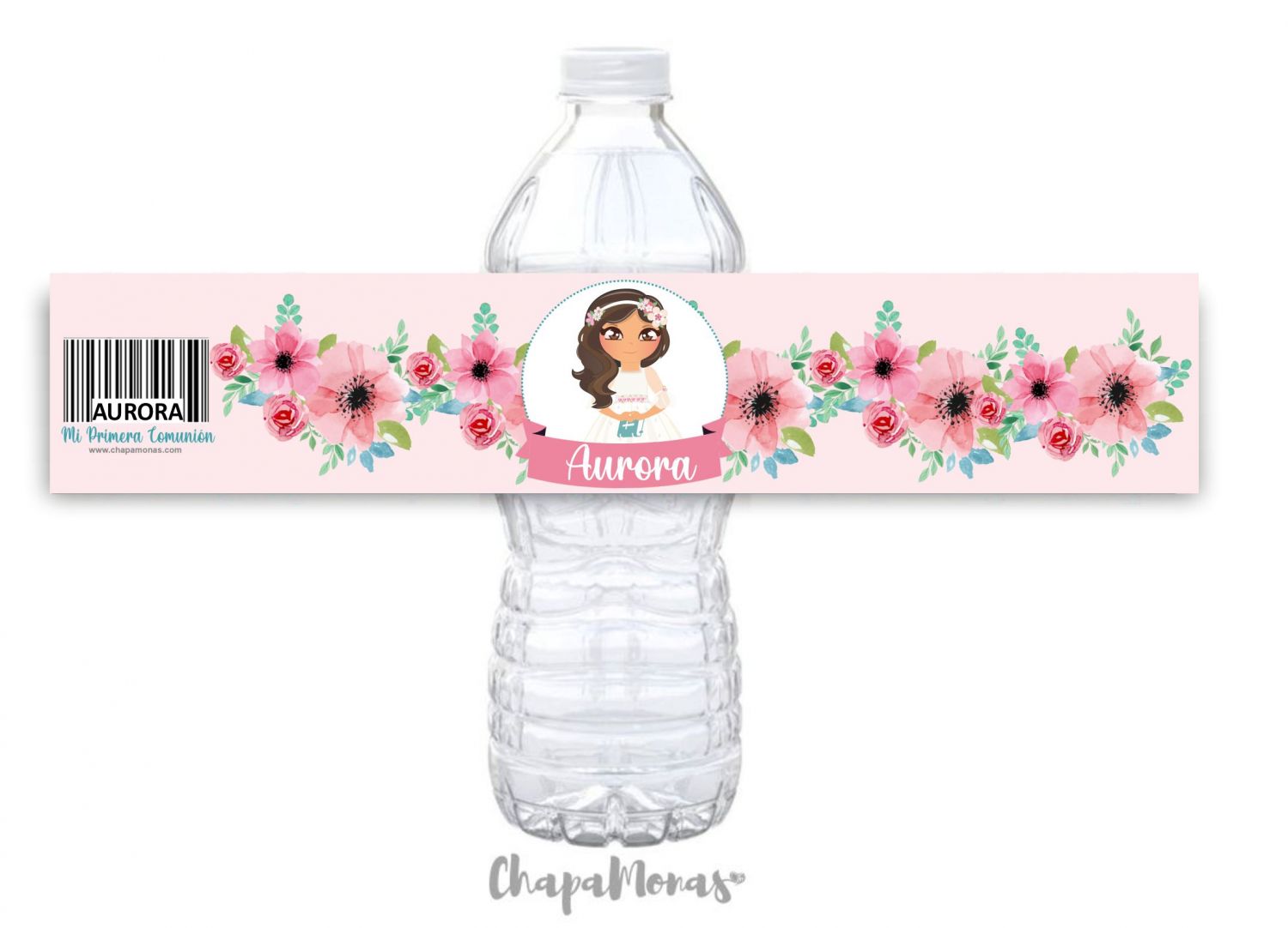 Pegatina especial para personalizar las botellas de agua!! la pegatina se personalizara con dibujito como la niña que hace la comunion, con su peinado, color de pelo, ojos y trajecito!!