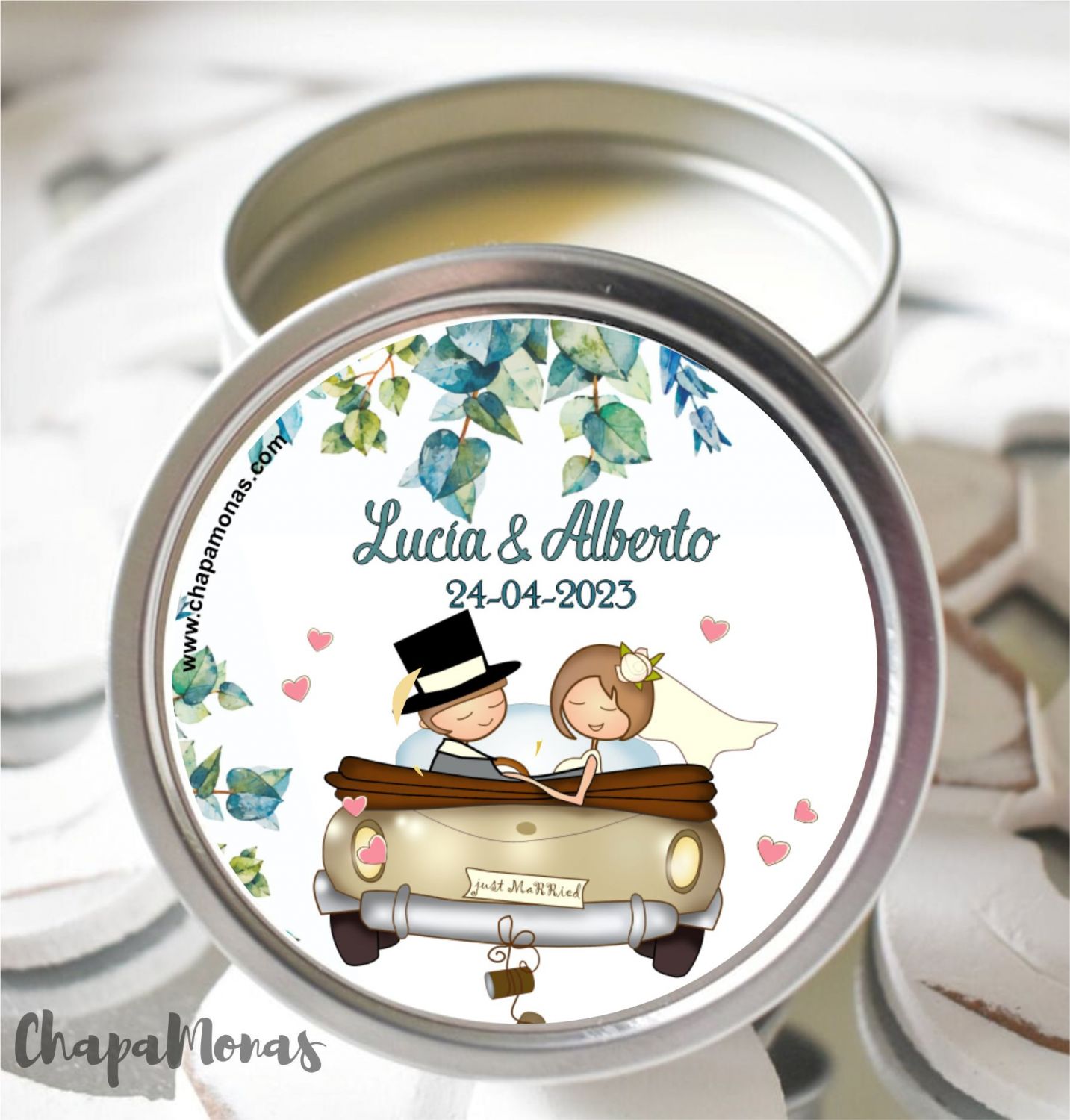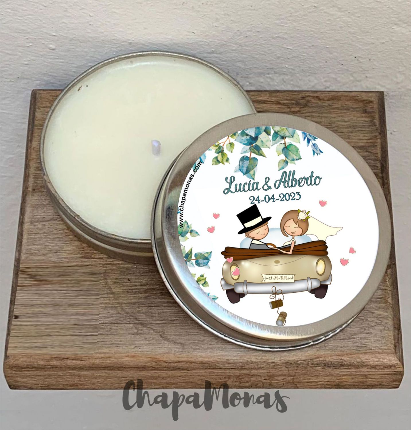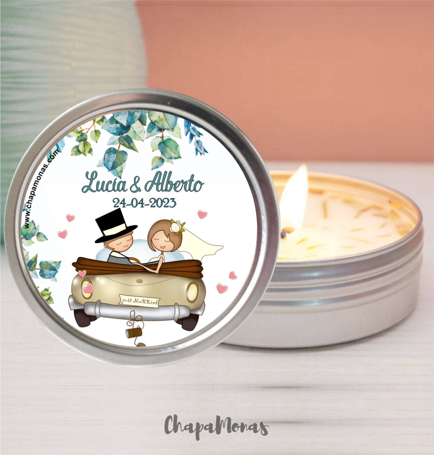 Vela personalizada única, natural y realizada de manera artesanal en España. Con un excelente aroma y pegatina personalizada a vuestro total gusto. Velas aromáticas blancas, artesanales fabricadas a mano con cera de soja 100% natural.