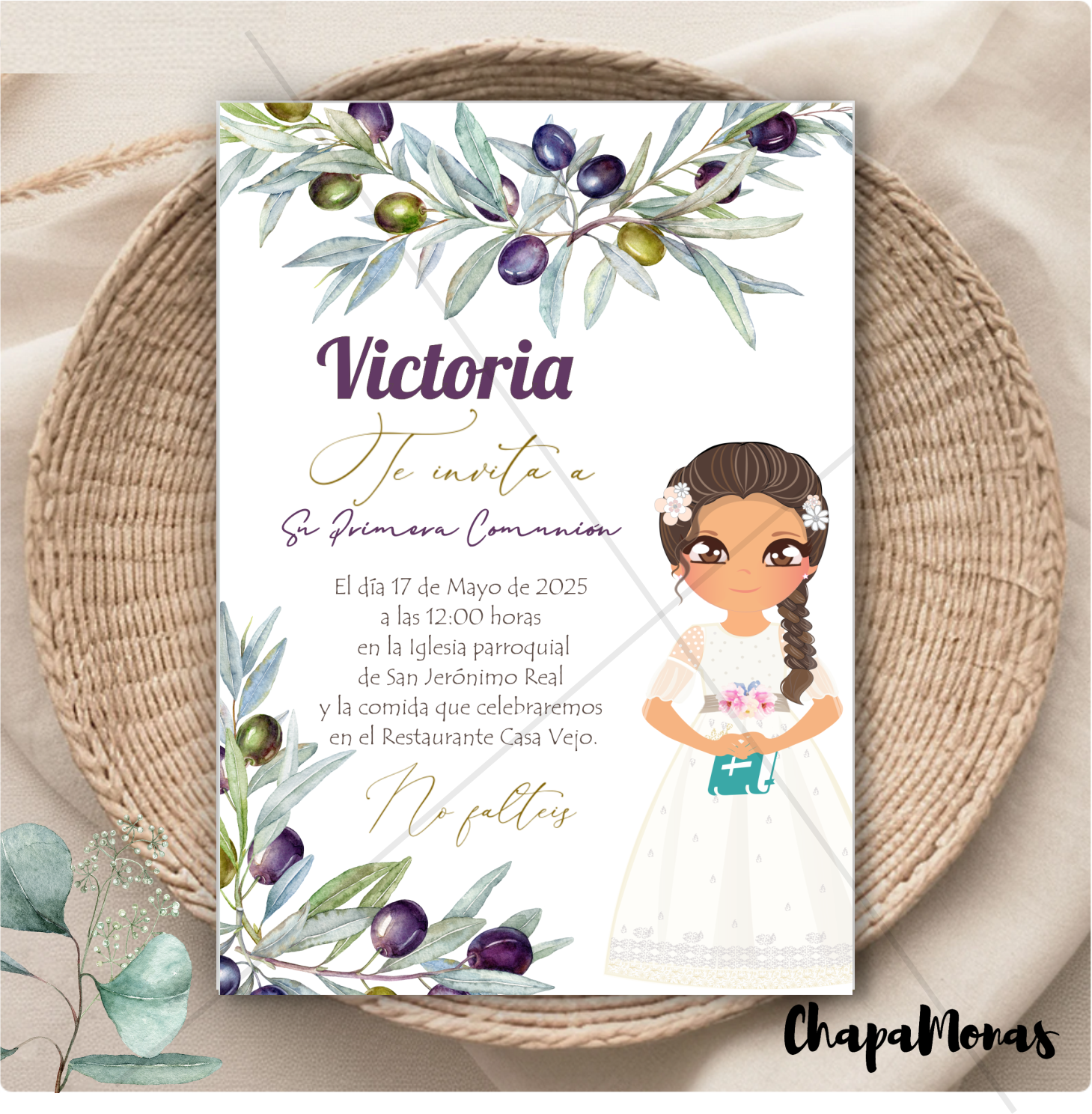 Invitación para Primera Comunión con un Original Diseño Personalizable!!