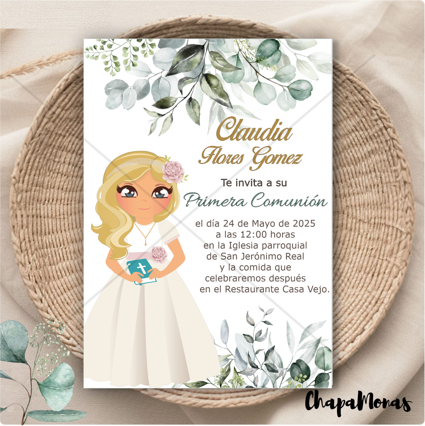 INVITACION PERSONALIZADA COMUNIÓN (Varios dibujos)