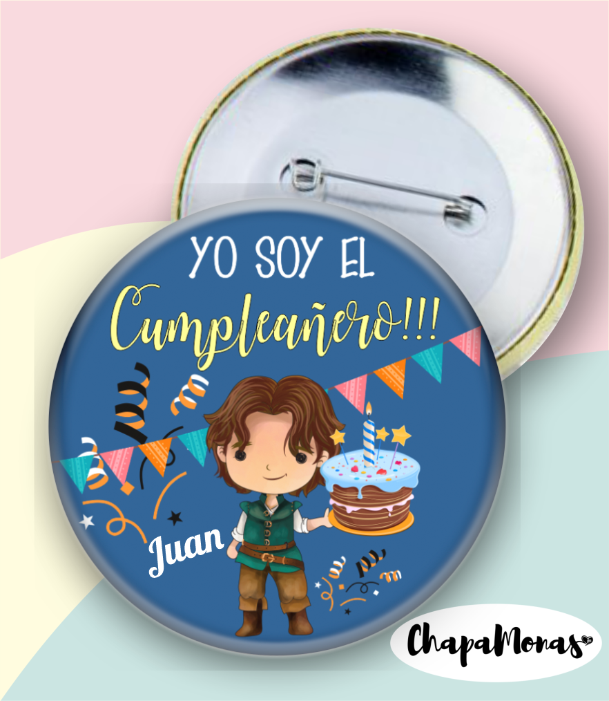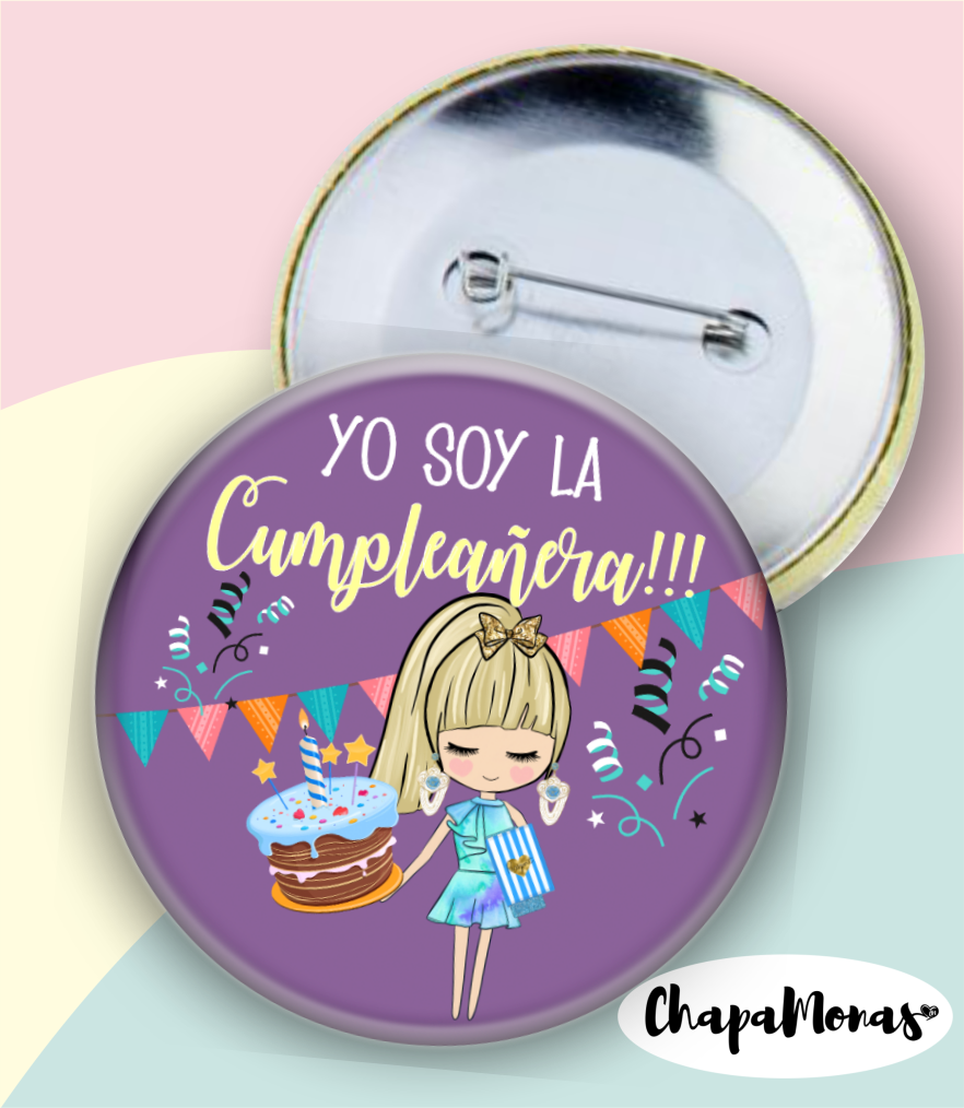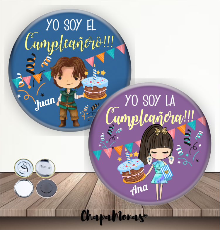 Añade el nombre del/ la cumpleañer@ y color de pelo (moreno o rubio) en "Personalización del producto" para que nuestro equipo pueda personalizar este original diseño y que luzcas con orgullo tu chapita.