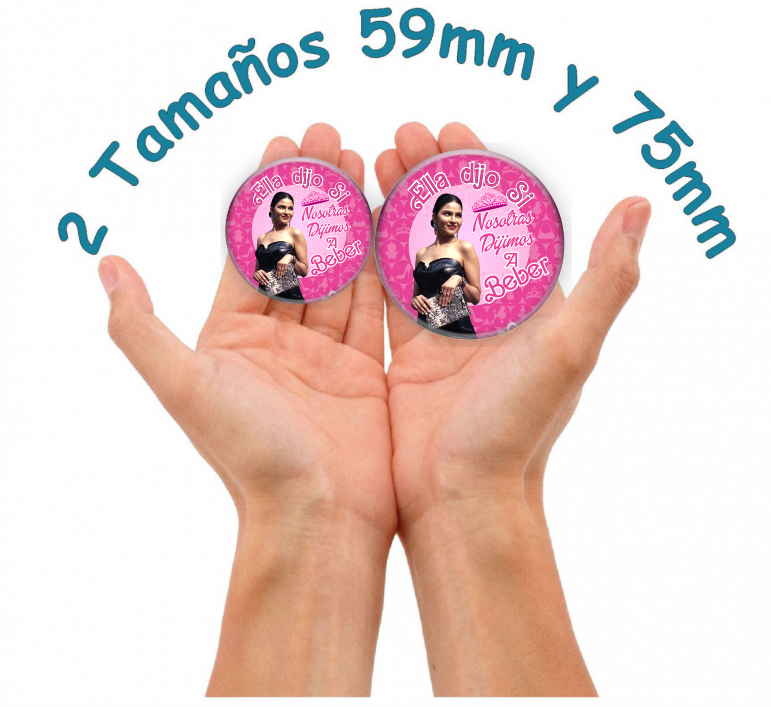 - Chapas para las invitadas: Ella dijo si, nosotras dijimos a beber