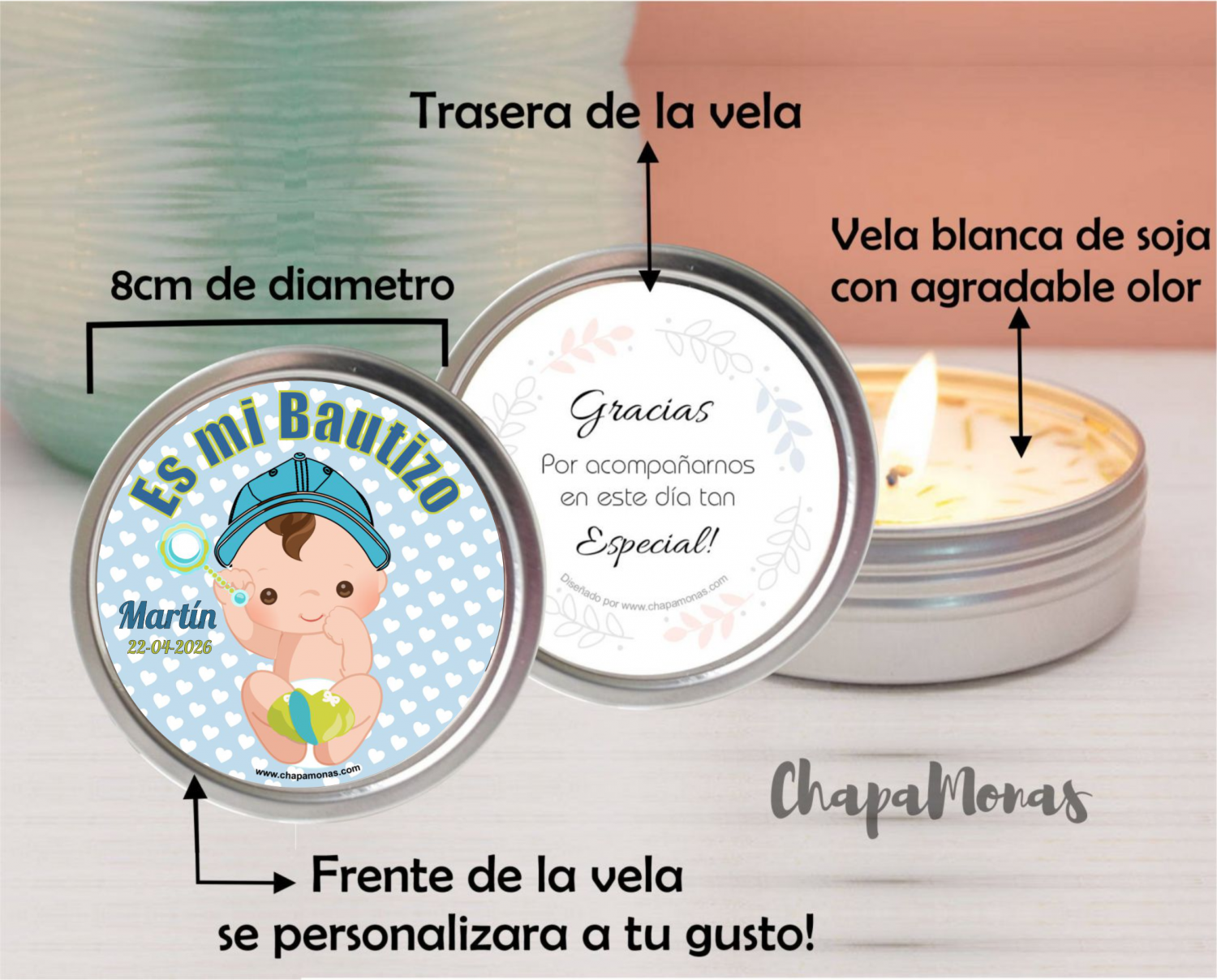Vela personalizada para Bautizo, No solo son una hermosa decoración, sino también un regalo único y personalizado que durará para siempre. ¡Haz que vuestro bautizo sea aún más especial con nuestras velas personalizadas! aromática de soja vegetal .