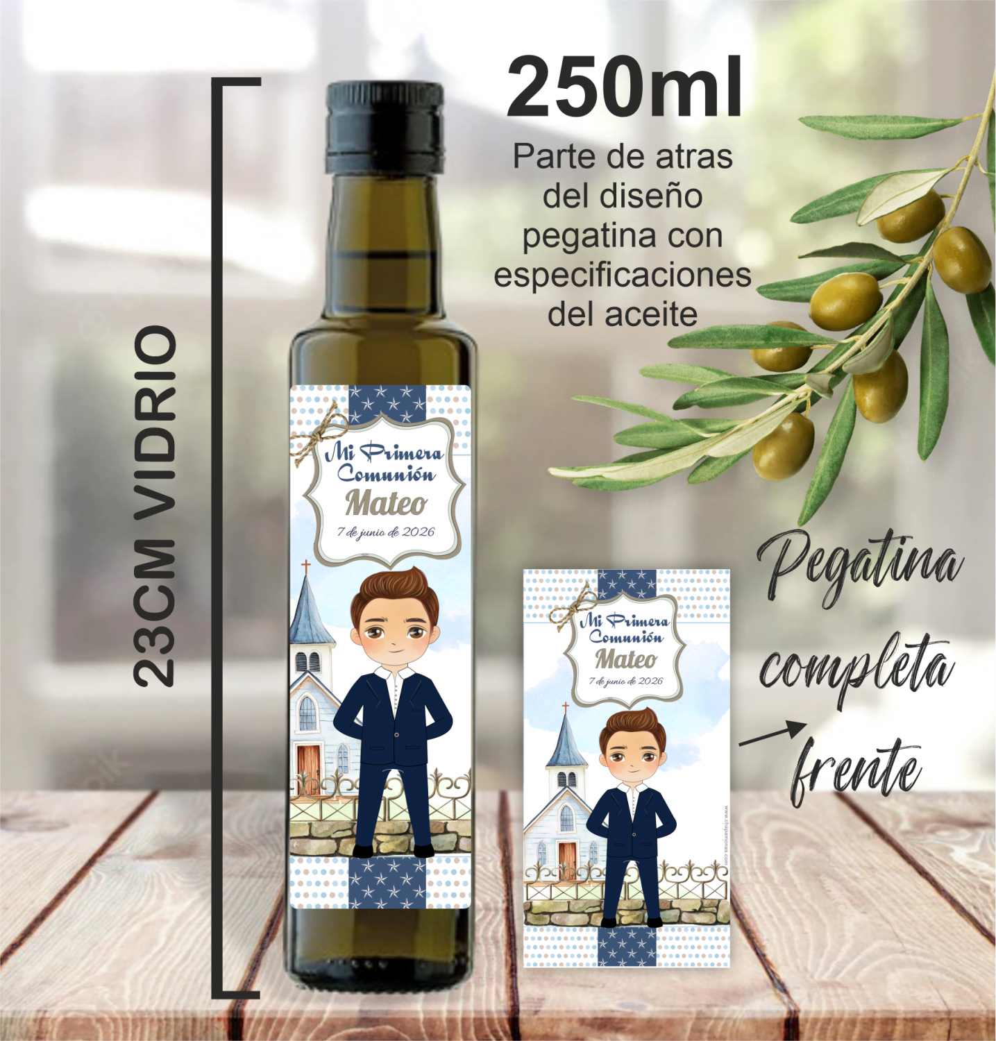 Aceite de Oliva Virgen Extra Monovarietal Picual para Primera Comunión – Botella Personalizada 250 ml
