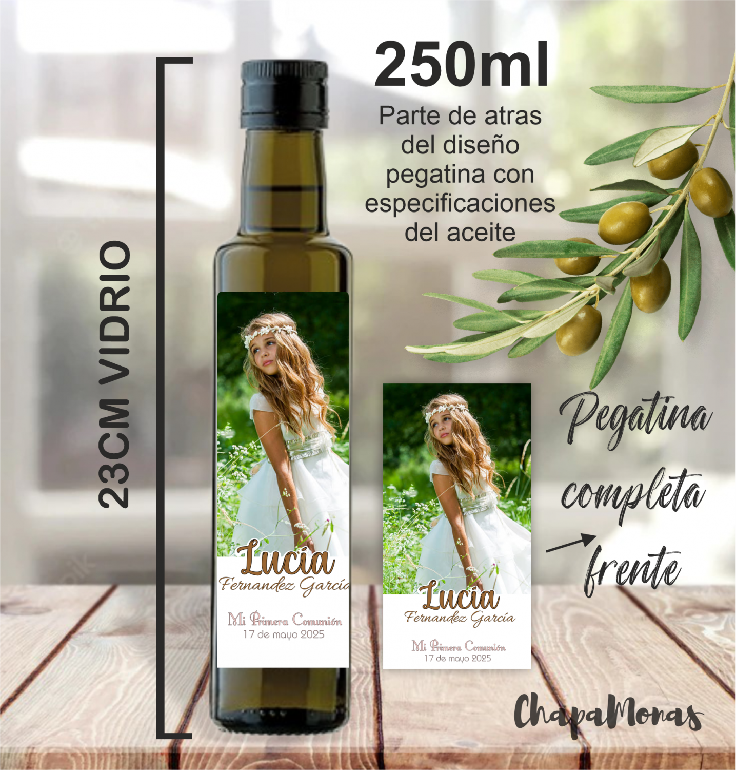 Aceite de Oliva Virgen Extra Monovarietal Picual para Primera Comunión – Botella Personalizada 250 ml